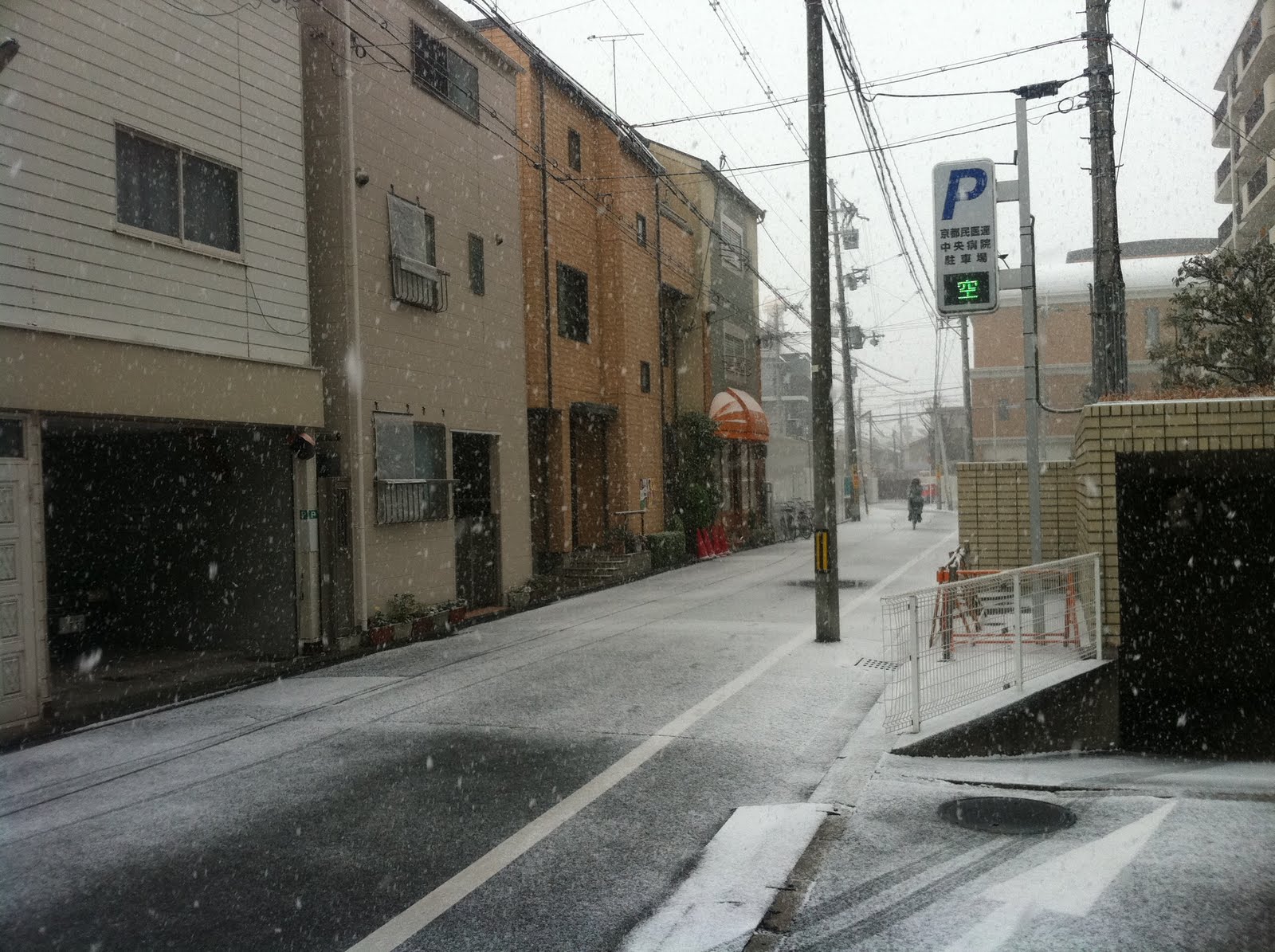 朝、妻と一緒に車で家を出たころから、雪が降ってきていましたが、「どうせ京都のことだ、降ってもすぐに溶けるだろう」と甘く考えていました。